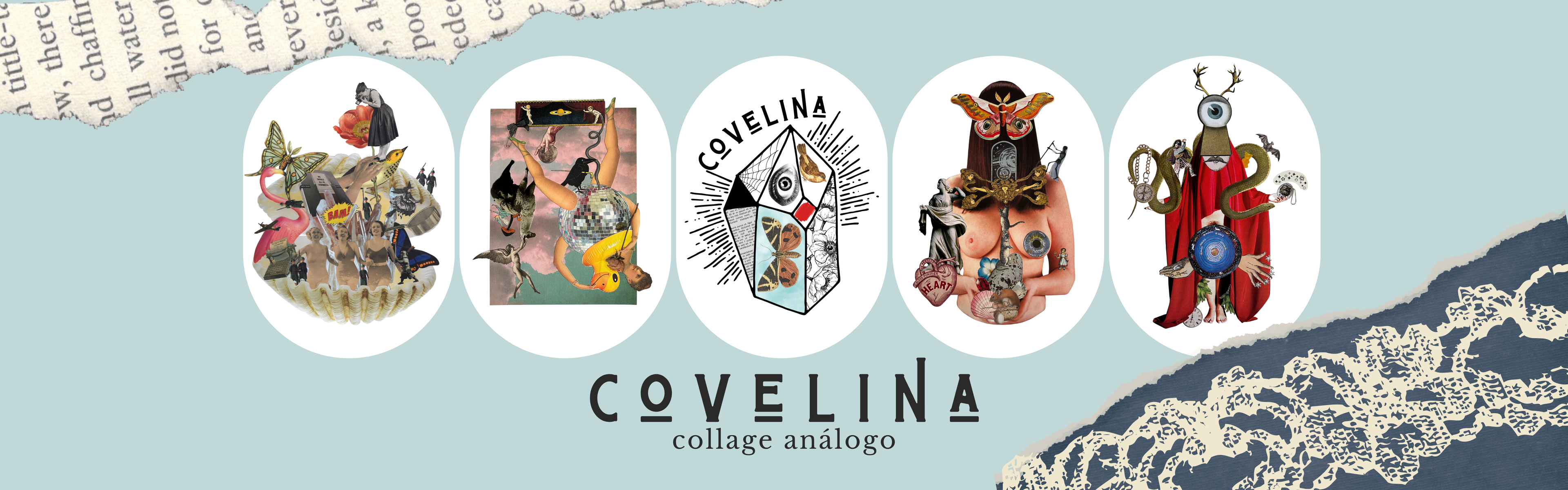 Los tazones de Covelina están ilustrados con distintos collages análogos, cada uno...
