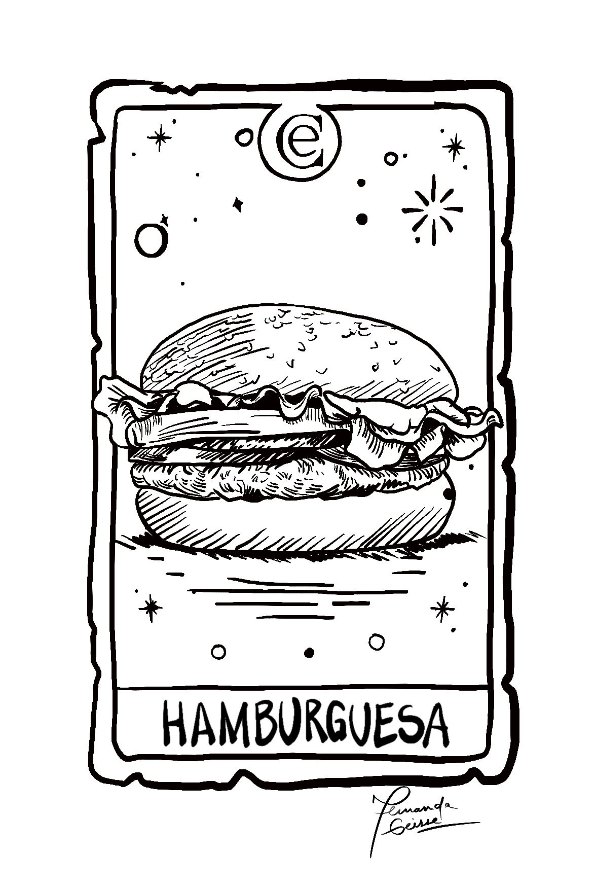 La ilustración combina el imaginario simbólico del tarot con elementos gastronómicos, creando una imagen lúdica y conceptual pensada para acompañar la experiencia del evento y reforzar su identidad visual.