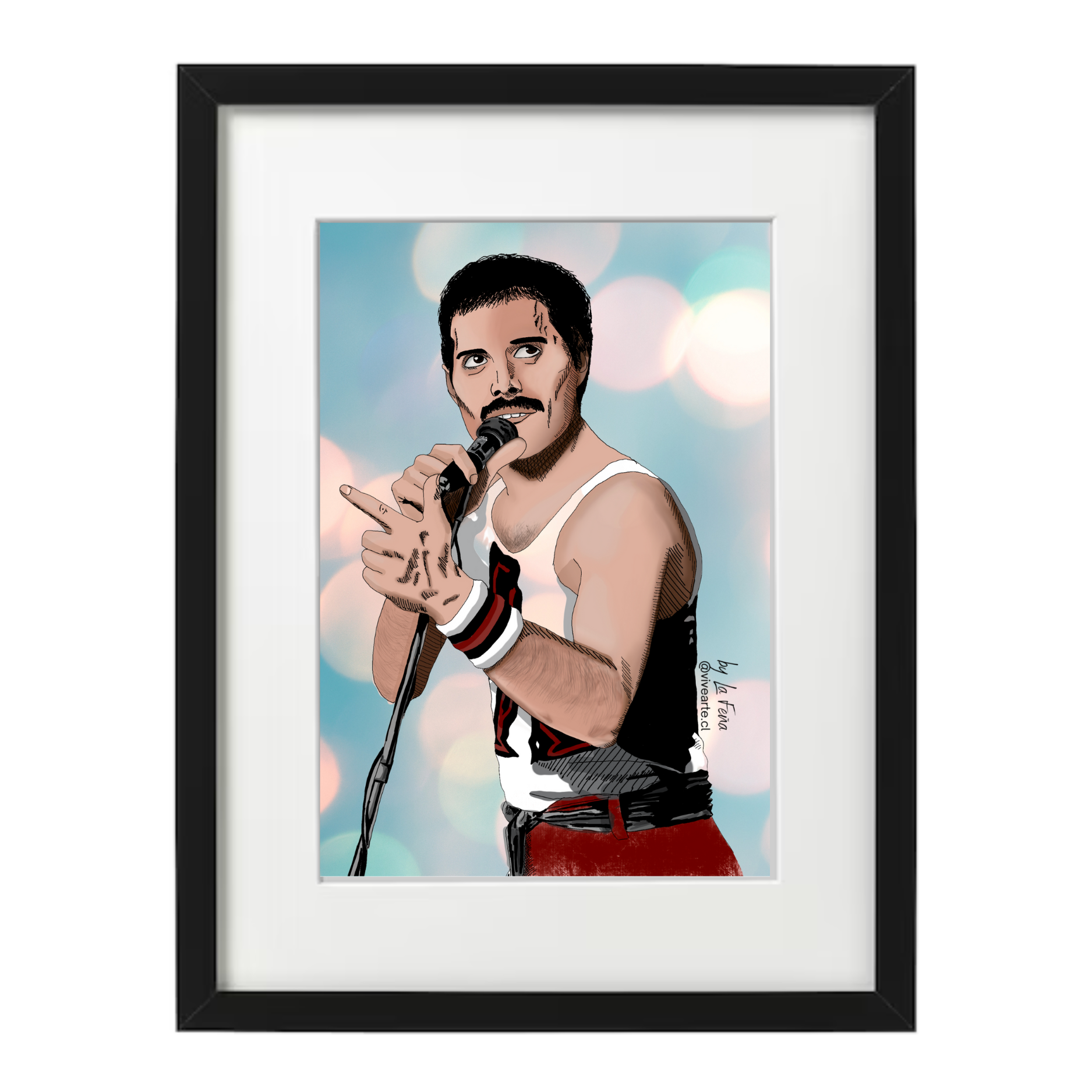 Hermosa Ilustración de Freddy Mercury enmarcada.