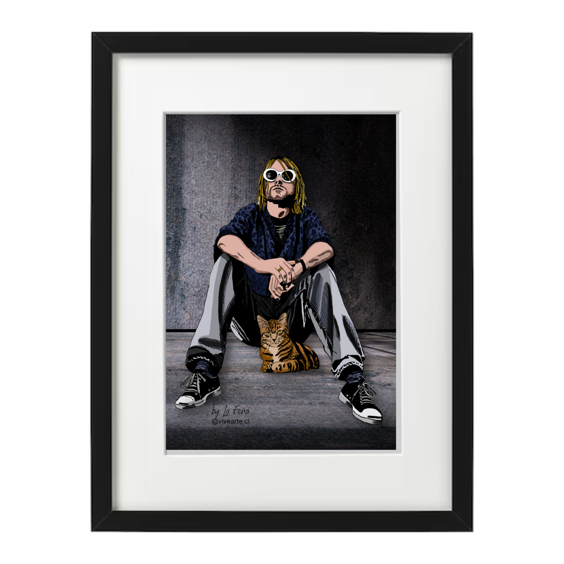 Hermosa Ilustración de Kurt Cobain enmarcada.