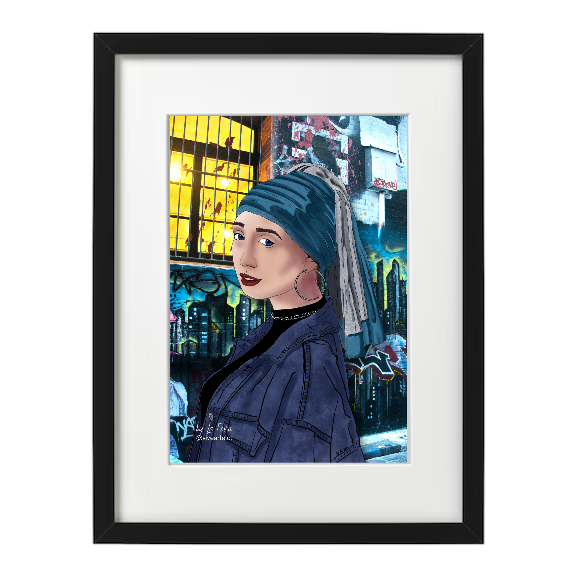 Hermosa Ilustración de La Niña de la Perla enmarcada.