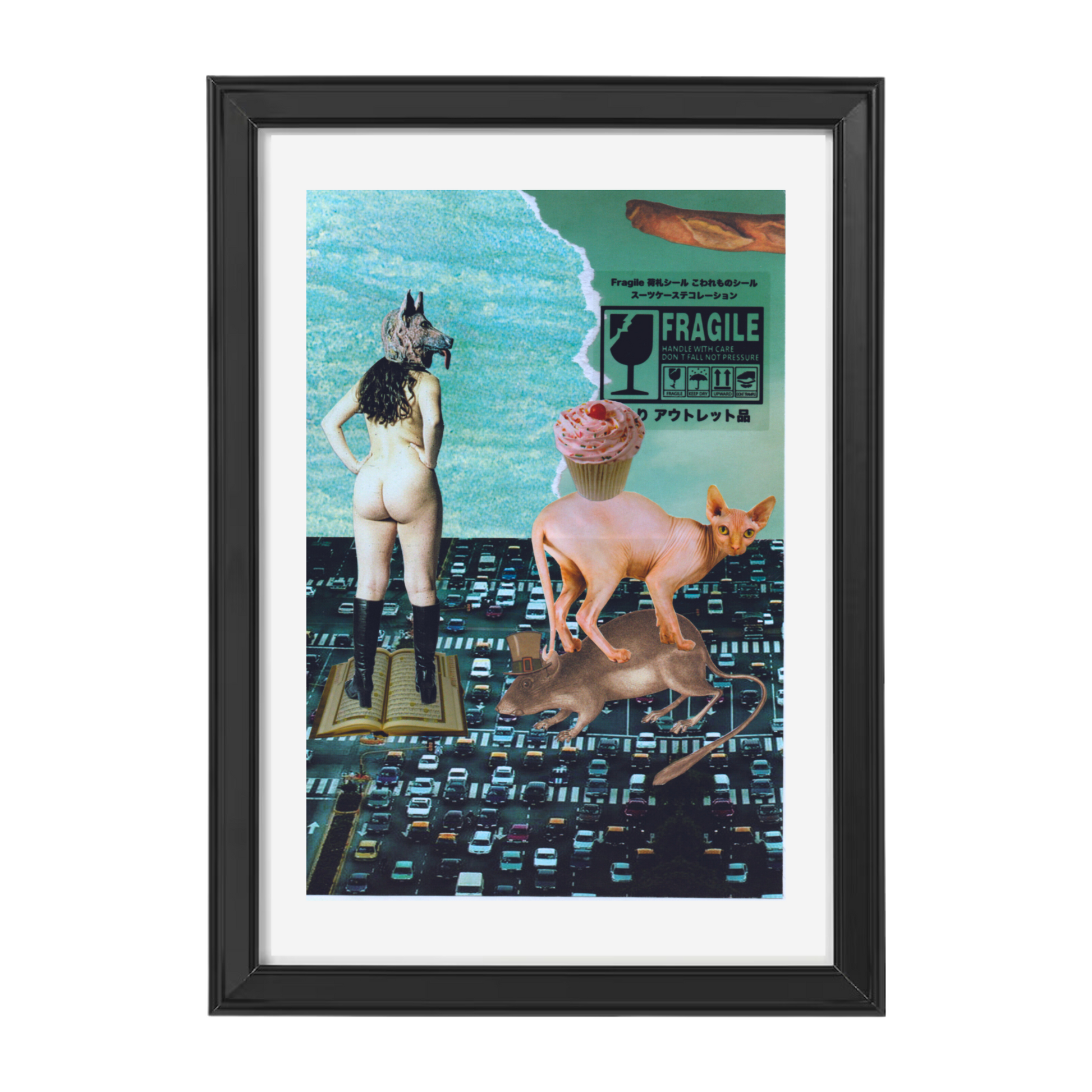 Print de collage análogo El ciclo de la Vida con marco y mica transparente.