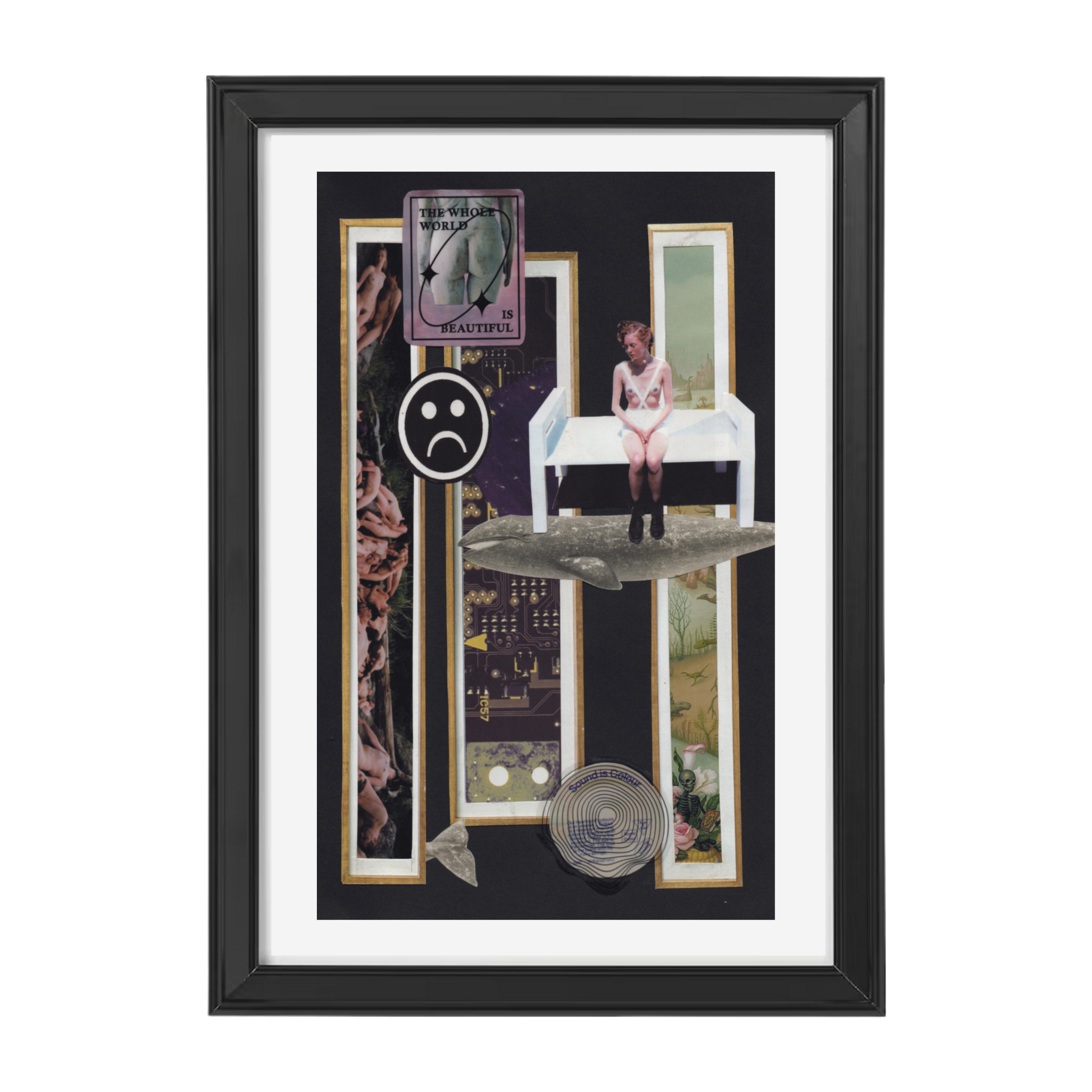 Print de collage análogo Evolución con la Humanidad con marco y mica transparente.