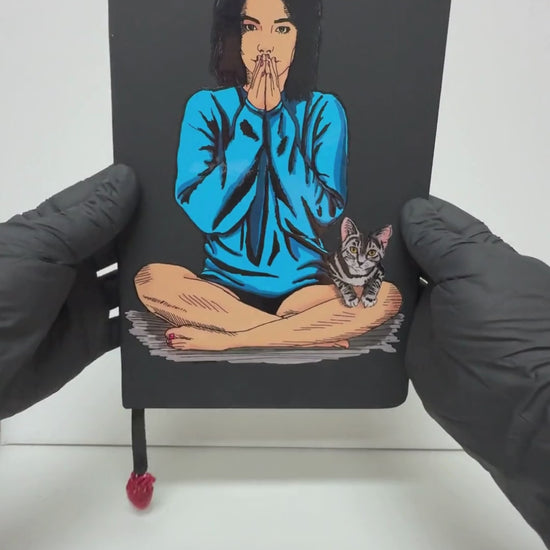 Confección Nacional, formato A5 / 14 × 21 cm (tipo Moleskine), con tapa dura símil cuero con ilustración original inspirada en Björk, donde sensibilidad, introspección y fuerza creativa se traducen en imagen.