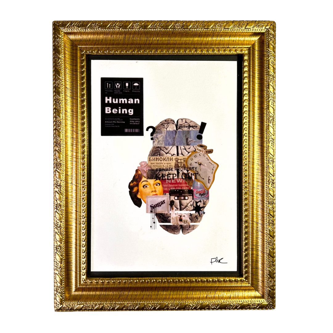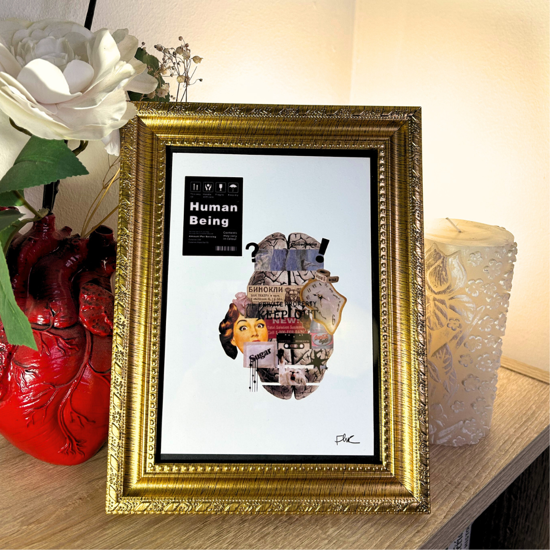 Print de collage análogo Cardiopatía 001 enmarcado en dorado.